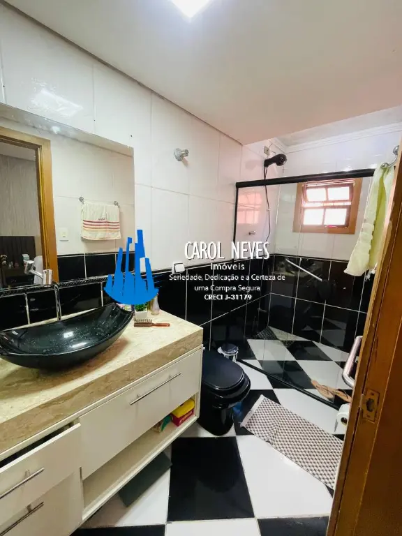 3 suítes (1 suíte térrea e 2 suítes na parte superior do sobrado)