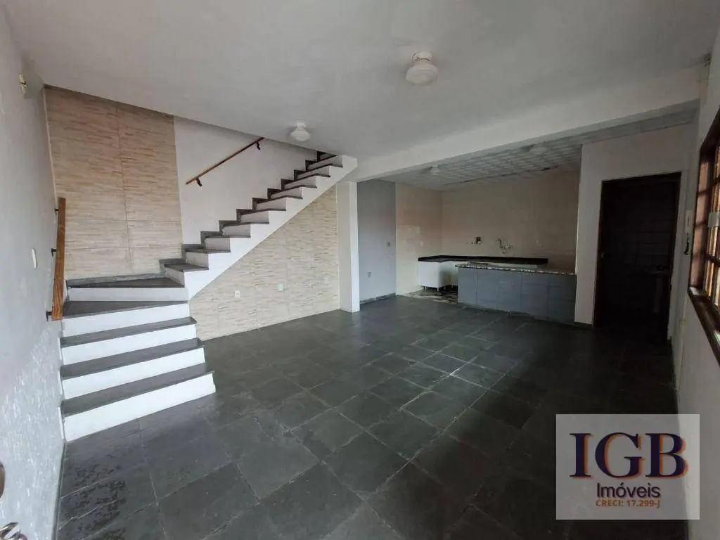 No nível da rua, o imóvel dispõe de um salão/garagem com capacidade para dois carros.