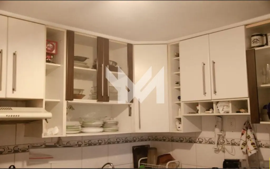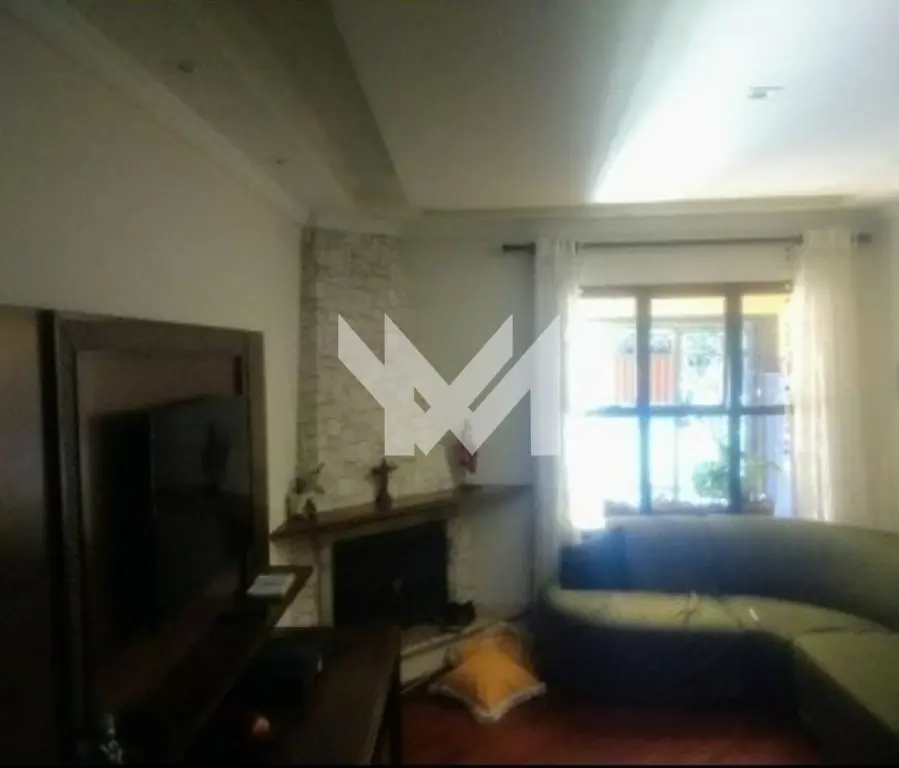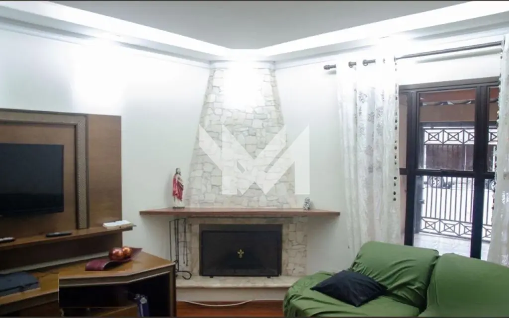Sobrado de 101m² com 3 dormitório, 1 suíte, banheiro, sala de jantar, sala de estar com lareira, lavabo, cozinha, área de serviço e 2 vagas de garagem.