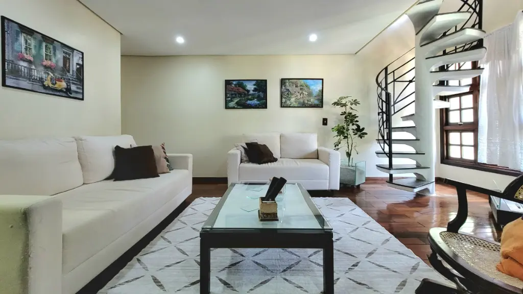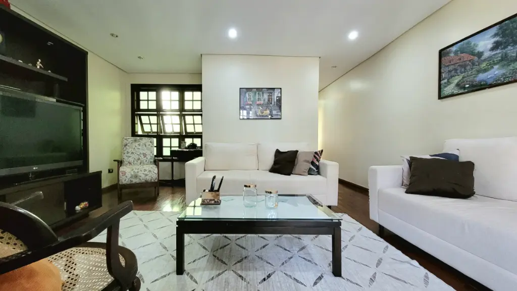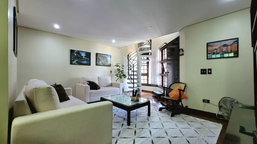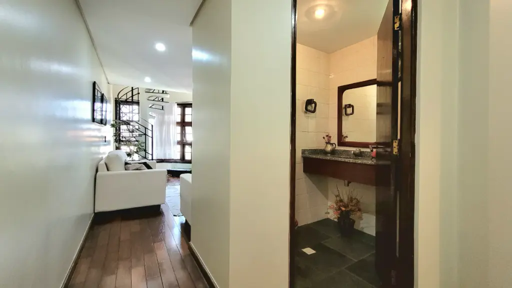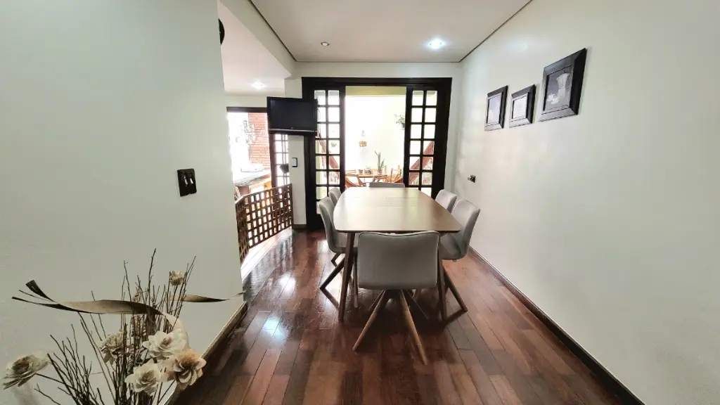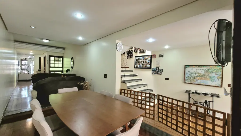 O toque final de requinte e acolhimento fica por conta do piso de madeira maciça em toda a casa. Este acabamento natural realça o clima caseiro e é especialmente valorizado em São Bernardo do Campo, onde o frescor do fim do dia torna o sobrado um lar naturalmente aconchegante e convidativo.