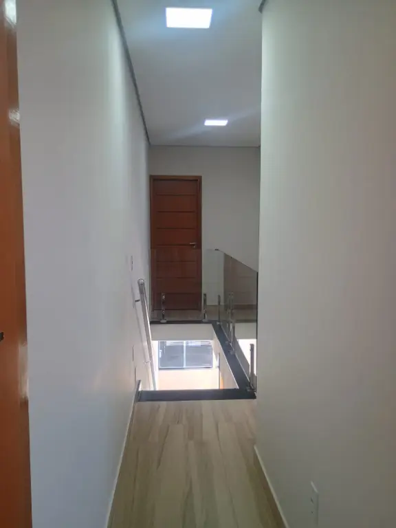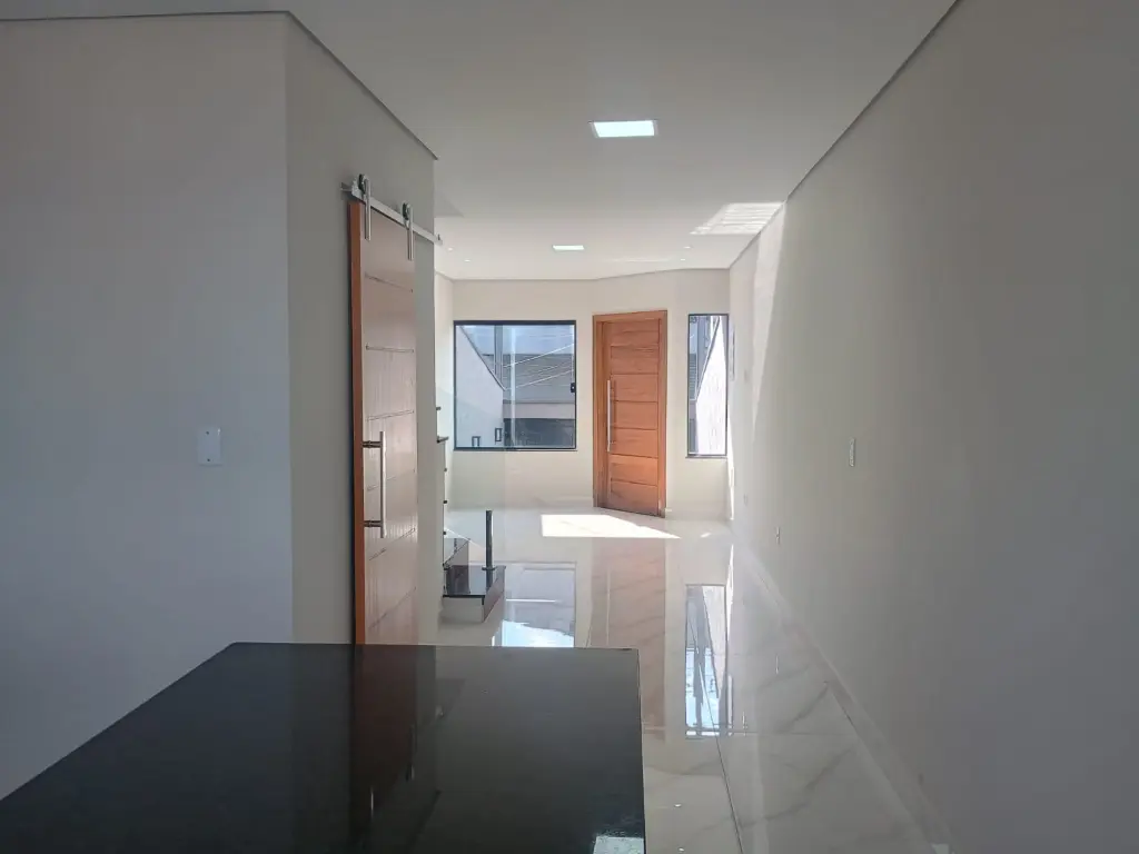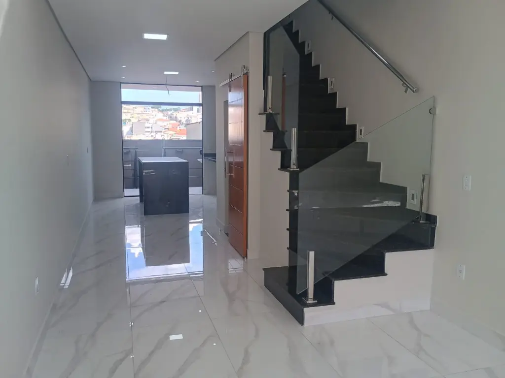 3 dormitórios, 1 Suíte, Jardim de Inverno, Cozinha integrado com a Sala, Área de Serviço integrado com acomodação para futura churrasqueira, Lavabo Social e na Garagem e vagas para 3 carros, com Portão Automático.