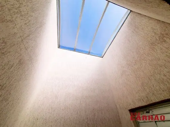 Possui 6 vagas de garagem, que pode ser usado como um amplo salão de festas com banheiro.