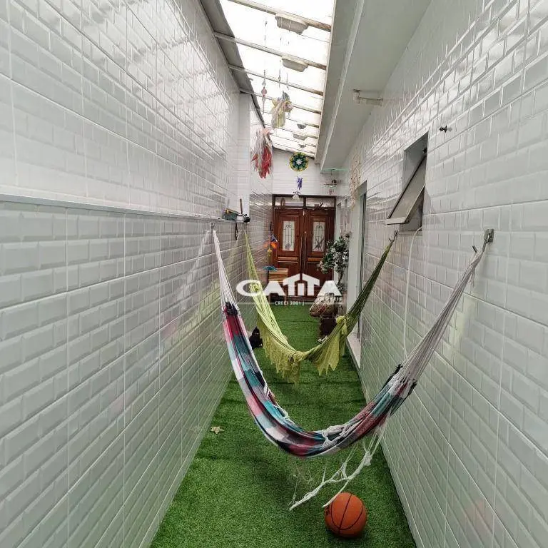 -Corredor lateral com grama sintética e redes para descanso e também outra opção de lazer.