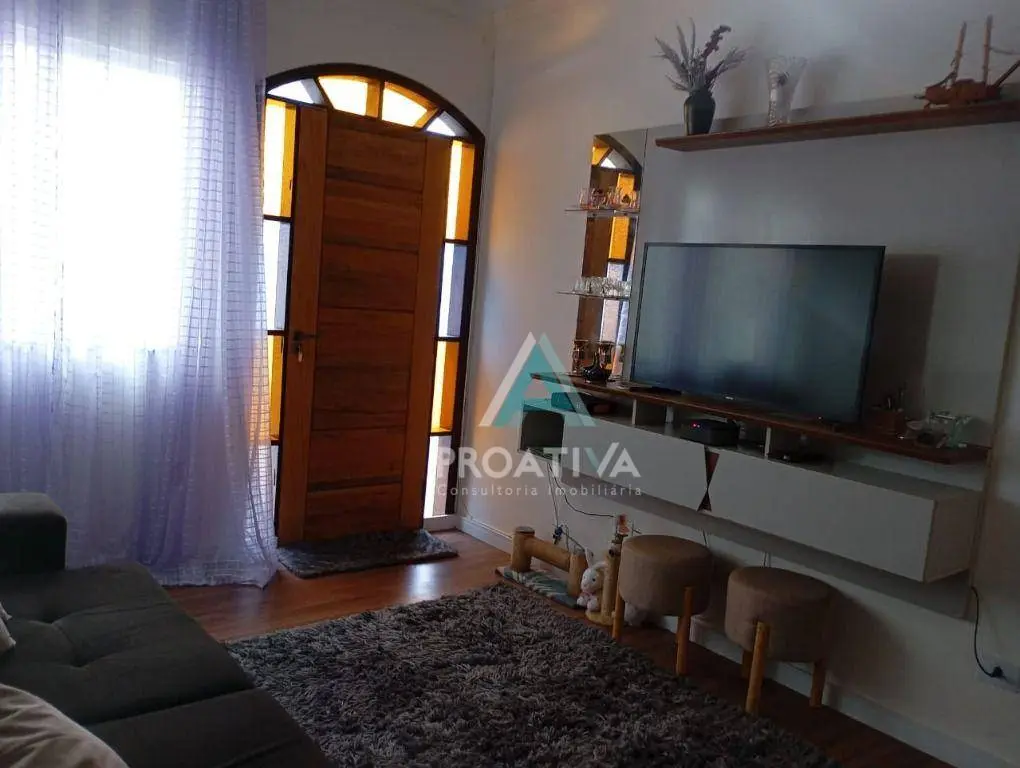 Este sobrado à venda em Santo André apresenta uma planta funcional, com boa distribuição dos ambientes. No pavimento térreo, estão sala, cozinha e área de serviço, com espaços bem definidos. No pavimento superior, os dormitórios garantem privacidade, sendo duas suítes que agregam mais conforto.