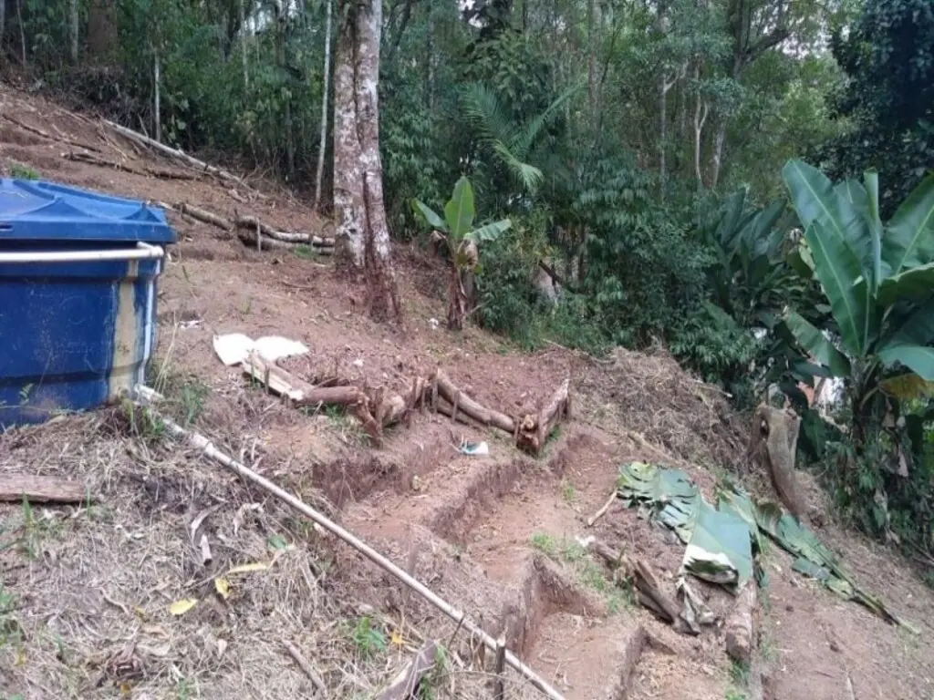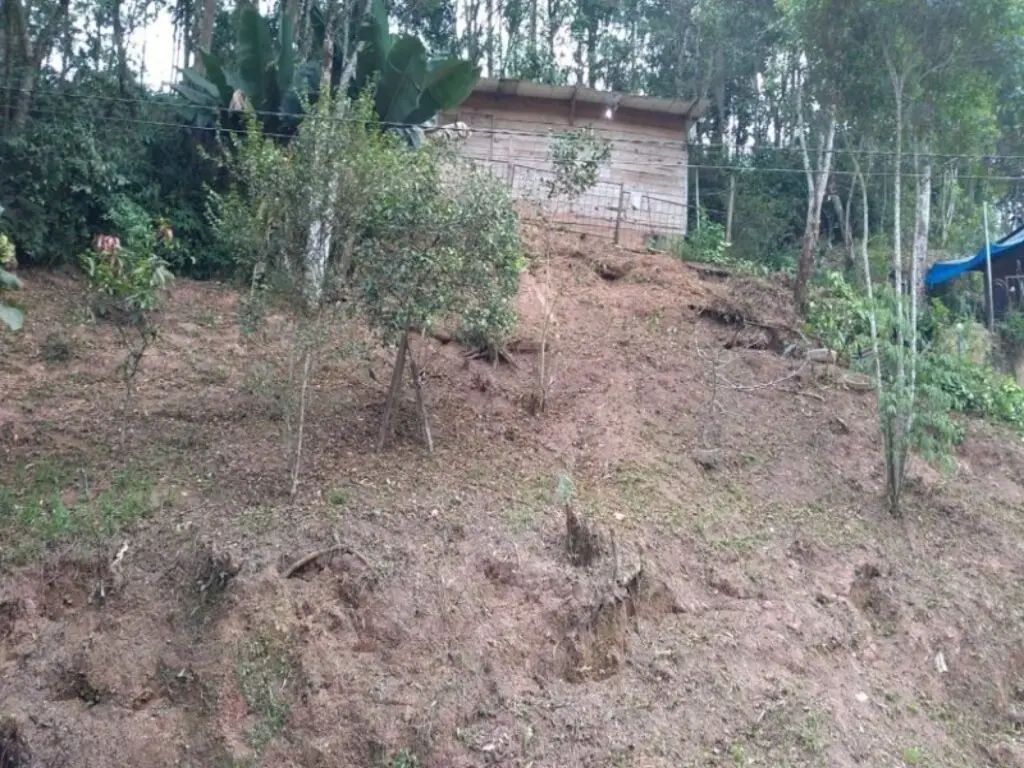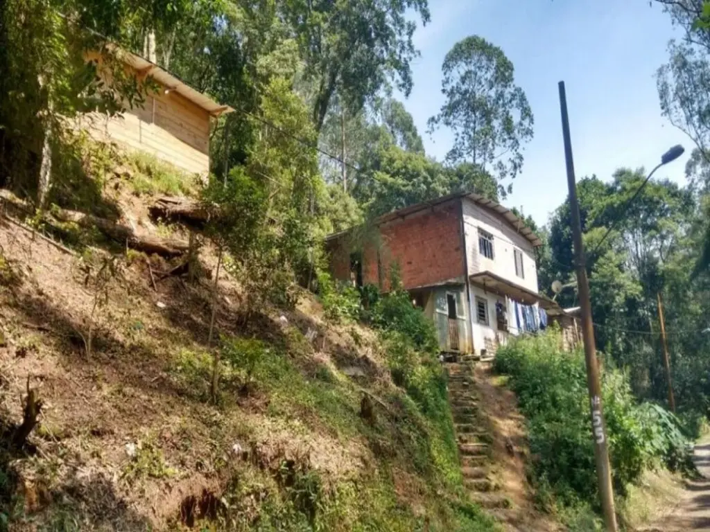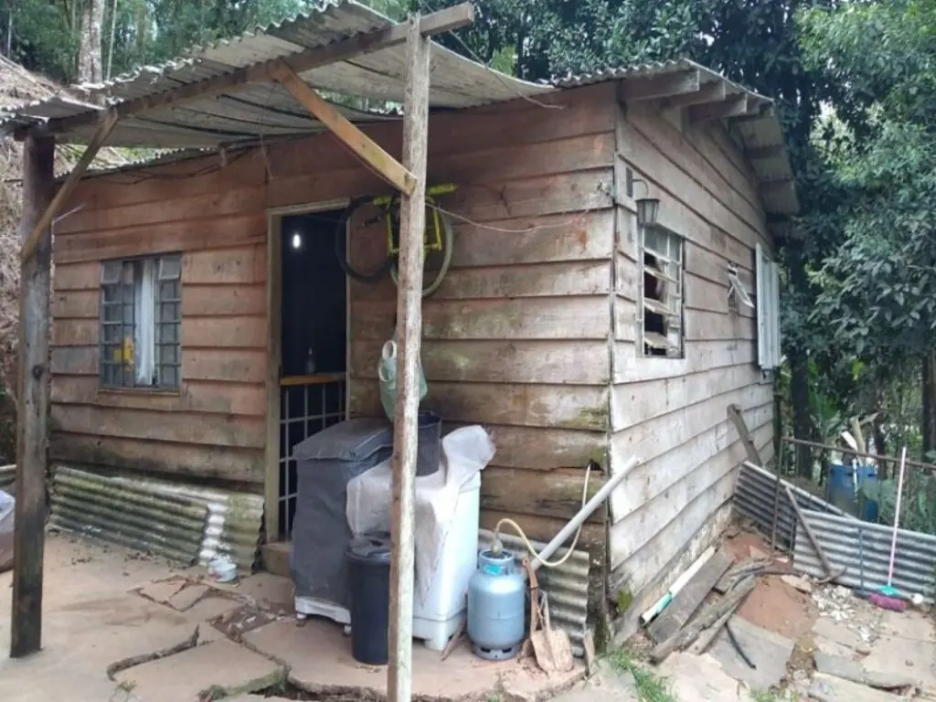 terreno com 45 metros de frenteárea total 1073 m² com casa de alvenaria uma com 05 cômodos e precisa acabamento e duas casas de madeira com poço artesiano