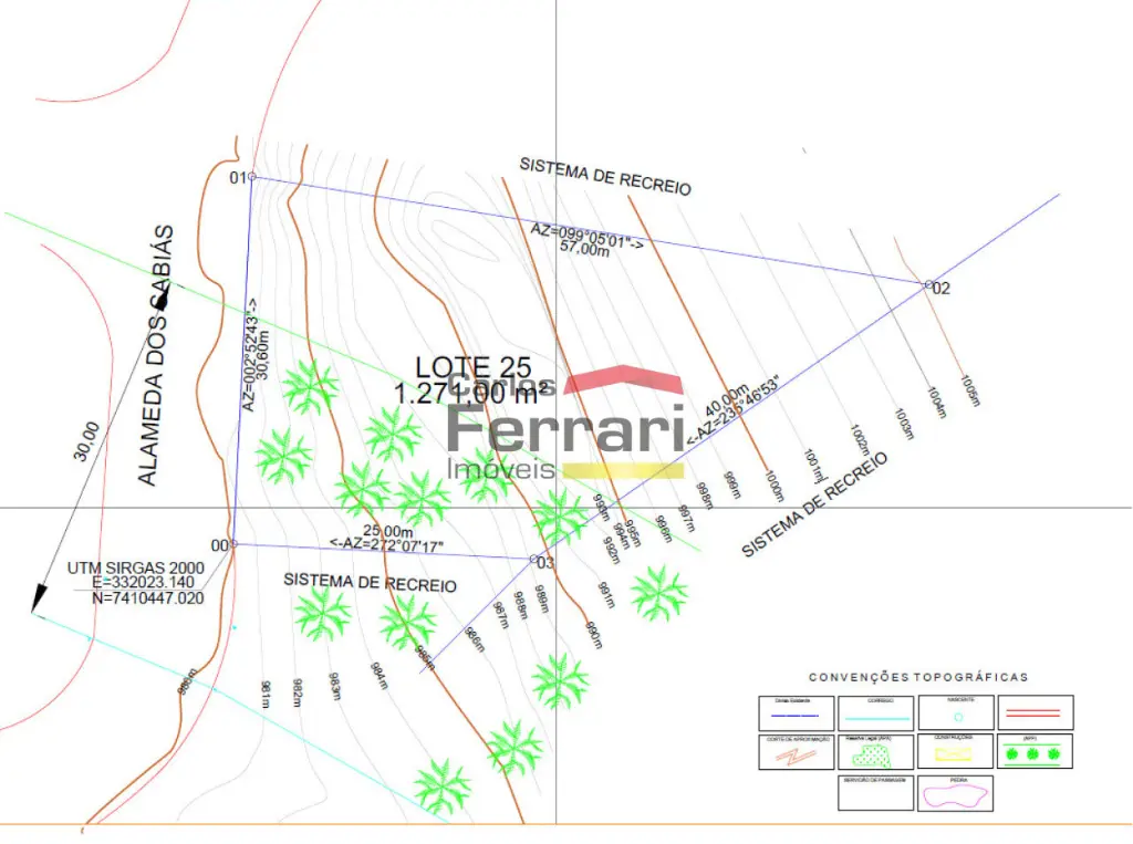 Lote à venda no condomínio Alpes da Cantareira com 1.271 m² de área total.